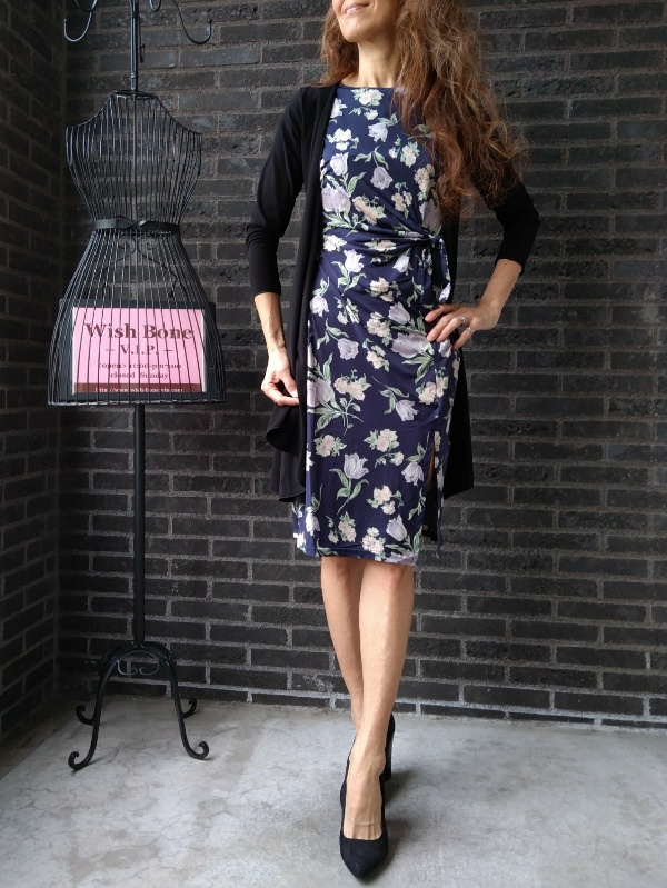 スッキリVネックと横で絞られたあわせ、スカートの切り替えもタップリのAライン。ギャザーなんて一切ないので裾への落ち方が綺麗です。