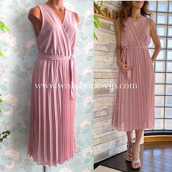 ITALY/イタリア製インポート|裾ラップ巻き シフォン プリーツ|ミモレ・ミディ丈・ロングワンピース/ベージュ(Free)